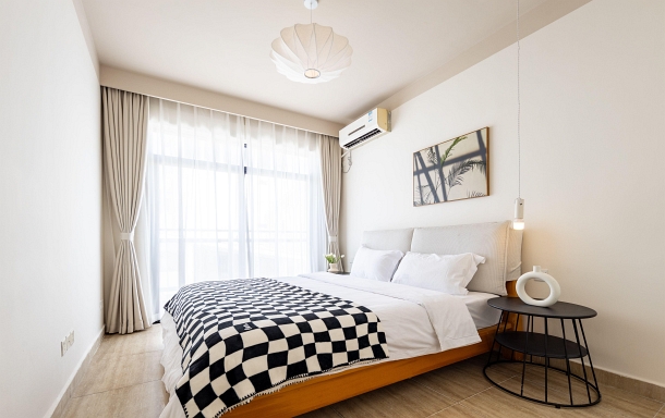 非常不错。住了四天 提前邮的包裹 走路到梦椰长廊十分钟。旁边就是超市可以买菜 跟图片一样很干净。卧室客厅都有空调 洗衣机还很干净