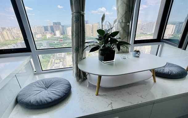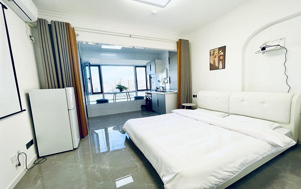 房间和图片一致,装修风格很喜欢,各种设施布置舒适,很干净,入住放心,民宿在繁华地段,周边交通出行方便。隔音好,空调凉爽,一整晚都睡的很安稳,下次还会选择这家民宿。非常热情的民宿房东,整个入住过程愉快且放心,房东也是有问必答,非常满意的一次入住体验,推荐!!!(特别是装修简约高雅,投影影院式体验。房间位置优越,窗外景观得天独厚。)