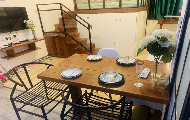 建国西路曲园,瑞金医院100米,可住4人,精装复式,实图,可长租特价优惠
