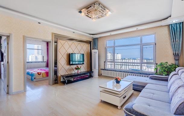 坐在家里看山海广场鲅鱼公主/两室四床/近市场/密码锁/双空调