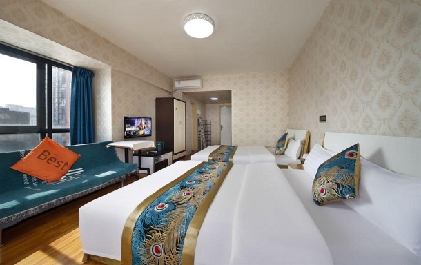 首先位置非常优势,走路几分钟就到宽窄巷子,楼下还有好多好吃的火锅,串串之内的,去打熊猫基地也很方便,离住处10分钟的路程就有直通车,反正一切都很顺利,房间干净,整洁,总之入住感很好啦!