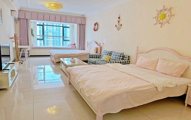 桂林高铁北站/万达广场/沃尔玛商圈 精装公寓民宿 小清新风 双大床房