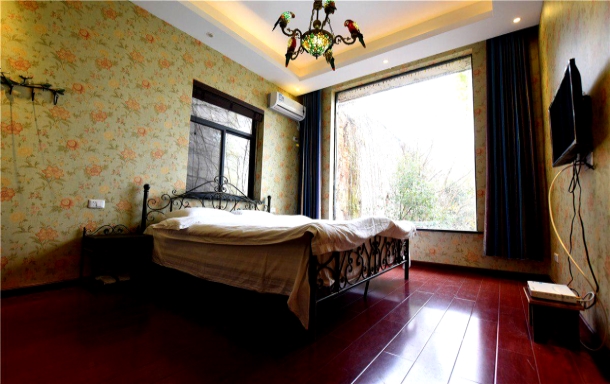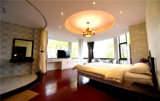 ★位置:别墅坐落于东湖生态风景区,紧靠东湖,隔湖与磨山相望,风景优美,空气清新,远离城市的喧嚣。 ★内部设计: (1)风格:【国外的派对生活】结合【生态度假】(2)180度的弧型玻璃透视窗+实木桌子+布艺沙发+观景阳台。 ★居室分部: 1楼(吧台+大厅+娱乐室+麻将室+多功能室); 2楼(四个卧室:180°全湖景套房+方形玻璃全景房+标间2间); 3楼(观景阳台+一间卧室麻将房); ★娱乐设施:钓鱼、投影、电影、室内外背景音乐、卡拉OK、麻将、扑克、桌游、烧烤等。 ★生活配备:厨房设施齐全,冰箱、冷柜、消毒柜、微波炉、简易餐具等应有尽有 ★多间卧室配备:精美铁艺床和铁艺床头柜、48寸智能电视、实木写字桌、休闲沙发、半开放式卫生间和浴缸等