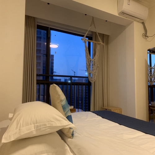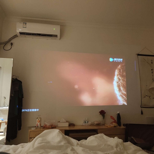 房间很简洁卫生,被子是白色的,也不容易留有污渍,投影看电影很方便,有提供洗衣机,只是介绍上面没有写,周围交通也非常方便,下面就有一排小吃街,提前订购价格真的非常实惠。