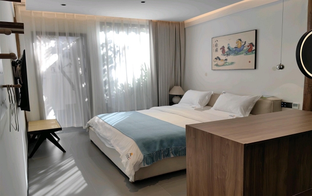 古城内阳光河景大床房,温馨河景大床房,精品大床房,水木年华双人床。