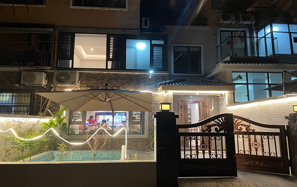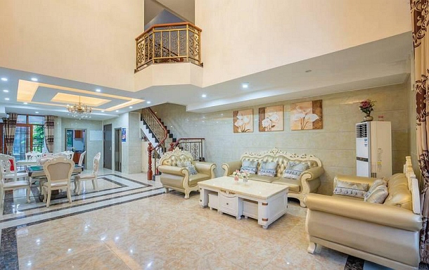 别墅周边的环境非常优雅,别墅内部装修的很有风格,房间非常的干净,有个温泉,设备很齐全, 同事在里面唱唱歌,打打牌、泡泡温泉, 还可以自己做饭及烧烤,环境不错,空气清新,房子新净,还有自动麻将机,房东热情细心,性价比高,赞一个!